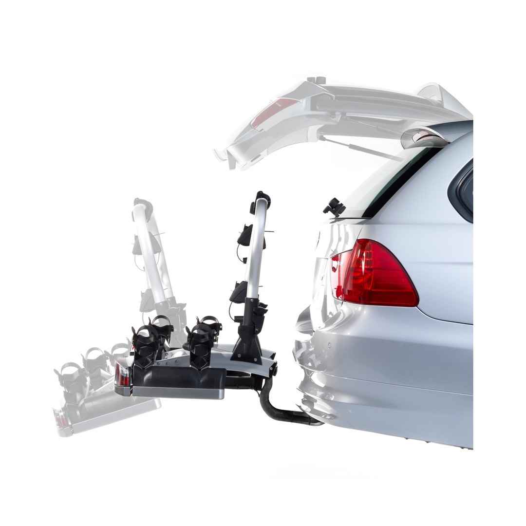 Le fer de lance de notre gamme de produits. Avec un minimu de manipulations le porte-vélos est mis en place ou décroché du véhicule et prêt pour etre rangé dans le coffre ou dans le garage. Design des feux arrières exclusifs à Atera.